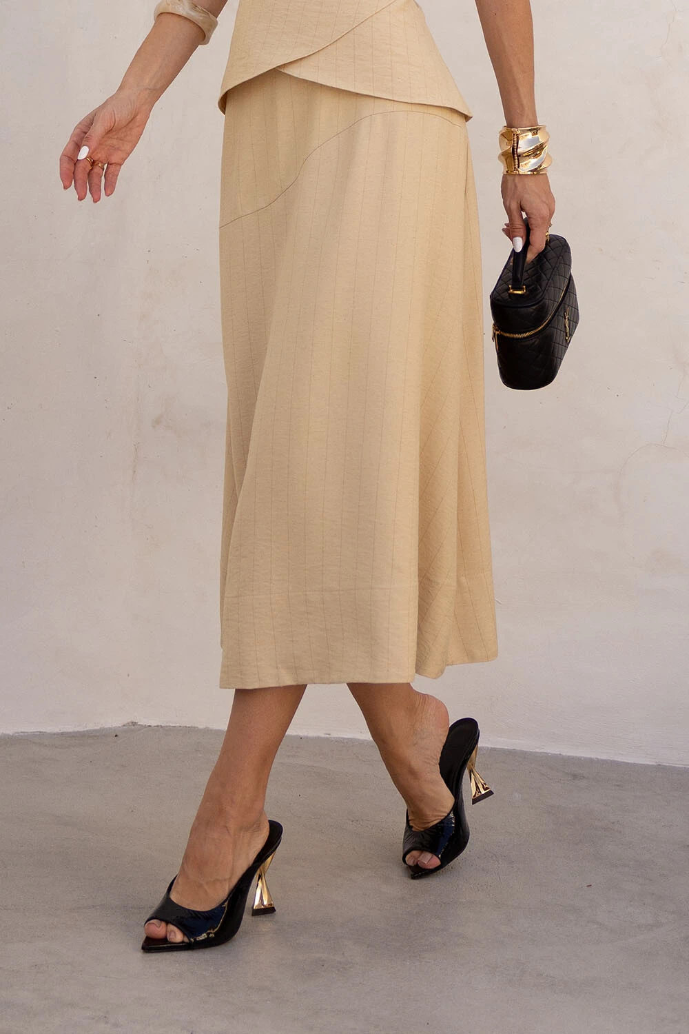 Conjunto Regata Peplum e Saia Midi Risca de Giz